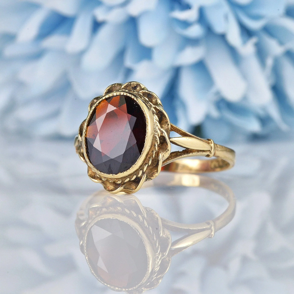 Oval Garnet and Diamond Ring in 9ct Yellow Gold